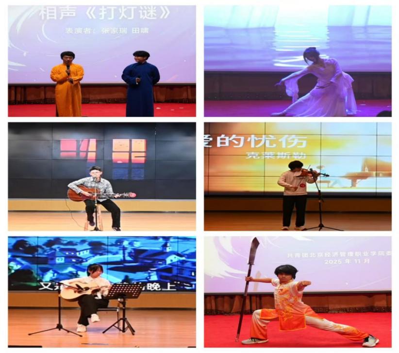 为丰富校园文化生活,增强新生归属感,展现当代大学生朝气蓬勃的精神风貌,11月4日和11月5日晚,由学校团委主办,校青年艺术中心承办的“才韵校园”新生达人秀活动分别在固安校区多功能厅和望京校区报告厅顺利举行,校院两级团组织老师和学生会主席团成员出席并担任评委,近700名2025级新生参加活动。