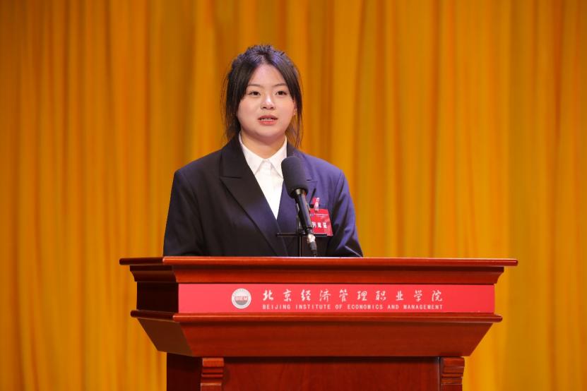 校学生会执行主席张意晴代表学校第三届学生会作题为《青春筑梦启新程笃行实干勇担当团结带领全校青年学生于新时代中挺膺担当、勇毅前行》的工作报告。