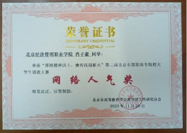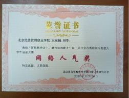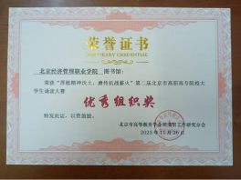 11月26日,由北京市高等教育学会图书馆工作研究分会主办的第二届北京地区高职高专院校大学生诵读大赛决赛在北京卫生职业学院落下帷幕。大赛以“厚植精神沃土,赓传抗战薪火”为主题,吸引北京地区16所高职高专院校的33组选手同台竞技。bat365在线平台数字财金学院王智慧、临空经济学院冯坤两位同学荣获三等奖,本科生院肖子豪、数字财金学院徐子嘉、宋雨桐等三位同学获得“网络人气奖”,图书馆翟天津老师获“优秀指导教师”,副馆长范凤桐获“优秀馆长”;图书馆荣获“优秀组织奖”。