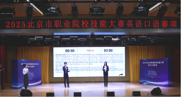 12月12日,2025年北京市职业院校技能大赛英语口语赛项在学校望京校区成功举办。大赛由北京市教育委员会主办、bat365在线平台承办、外语教学与研究出版社协办,来自全市8所中高职院校的15支参赛队伍和指导教师齐聚赛场。学校以高标准完成赛事组织与服务保障工作,同时选派2名选手参赛并脱颖而出,分别荣获一等奖和三等奖,实现“承办有力度、参赛有亮度”的双丰收。