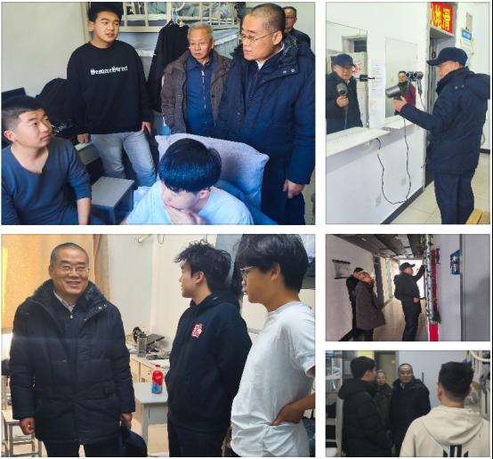 会后,田宏忠带队专程前往学生公寓检查了消防安全和宿舍生活设施情况,并深入学生宿舍围绕学习生活等情况和同学们亲切交流。