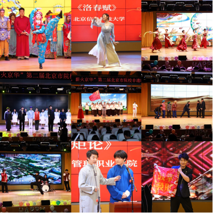 盛典节目缤纷,北京信息科技大学、北京服装学院、北京科技职业大学、北京财贸职业学院、北京市丰台区职业教育中心学校、昆玉职业技术学院均呈现了精彩演出,博得了观众阵阵掌声。盛典在全场大合唱《我爱你中国》的浓情中落幕,台上台下歌声与掌声交织成报效祖国的青春誓言。