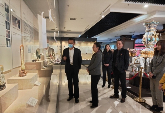 3月16日,bat365在线平台副书记、院长王粤带领科技处、教务处、党校办、珠宝与艺术设计学院、管理学院等部门负责人一行10人赴北京工艺美术博物馆调研。北京工艺美术博物馆党支部书记、馆长杨燕波,北京工艺美术博物馆党支部副书记李慕子、中国工艺美术大师李志刚、北京工艺美术大师袁长君等热情接待并全程参加调研。