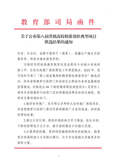 教育部发展规划司公布第八届省属高校精准帮扶典型项目推选结果